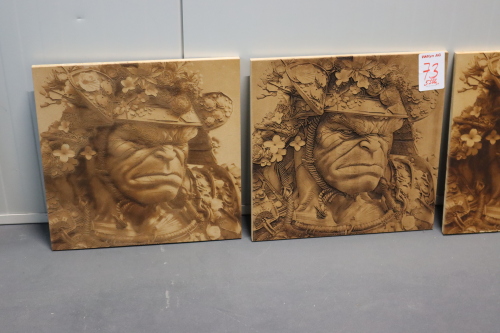 5 gelaserte Figuren auf Holz, Abmessung ca. 50 x 50cm