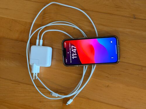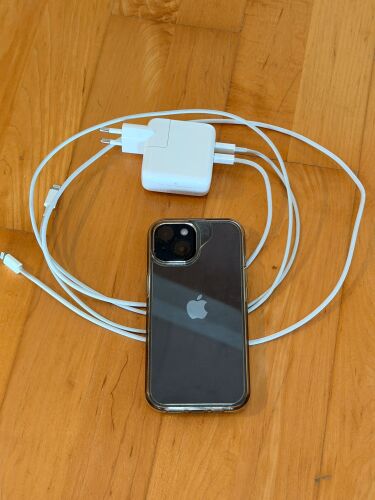 iPhone 14, schwarz, Modell-Nr. MPUF3ZD/A, Serien-Nr. KL22RHF7FX, iOS- Version 18.6.2, mit 128 GB inkl. 2 Ladekabel und 1 Adapter ohne Originalbox